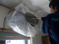 | ④ 洗浄前にビニールカバー取り付け後、専用の洗浄器を使い、薬剤でカビを洗い流します。 | ⑤ 洗浄後、乾燥させます。 |