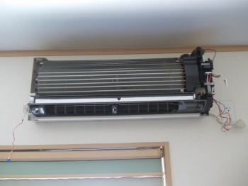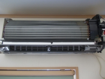 ③ 熱交換器の洗浄前です。カビの汚れがはっきりとわかります。 | |